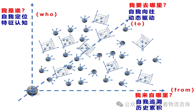 類似的邏輯在制造物流領域也具有重要啟示:物料同樣需要“知道”自身的身份(Who)、來源(From)、去向(To),以明確其在工廠和供應鏈物流系統(tǒng)中的坐標與運行軌跡。若物料缺乏這種“方向感”,就容易陷入被動與混亂狀態(tài),導致資源錯配和浪費,甚至引發(fā)系統(tǒng)崩潰。上述三問為物料規(guī)劃和調(diào)度提供了最樸素且務實的哲學起點,也是VOM思想的根源。