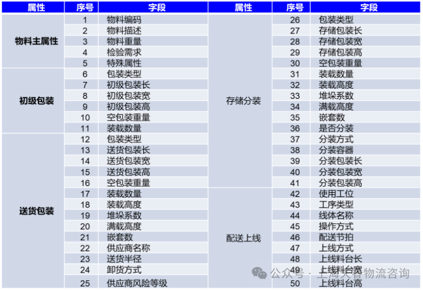 PFEP是采用倒推式的規(guī)劃原則,即從零件的最終工位出發(fā)往上游延伸到供應商,工位所需要的零件從工位邊的物料緩存區(qū)獲取,工位根據(jù)設定的規(guī)則拉動物料配送和供應商到貨。在智能工廠物流系統(tǒng)構建中,PFEP的數(shù)據(jù)庫里一般會包含基礎數(shù)據(jù)管理、物流資源管理、供方協(xié)同、庫存計劃、車輛調(diào)度、倉儲管理、廠內(nèi)配送、物流技術等,形成基礎數(shù)據(jù)的管理。
