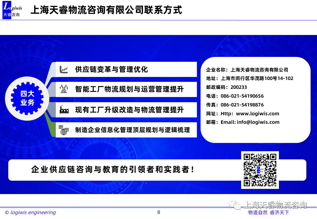 具體包含(不限于):園區(qū)物流循環(huán)路徑定義、功能區(qū)域布局定義、物流動線(設施)設計、工位物流上線模式定義、物流系統(tǒng)基礎流量測算、關鍵物料流動模式定義、物流過程一致性仿真以及物流信息系統(tǒng)邏輯梳理。
